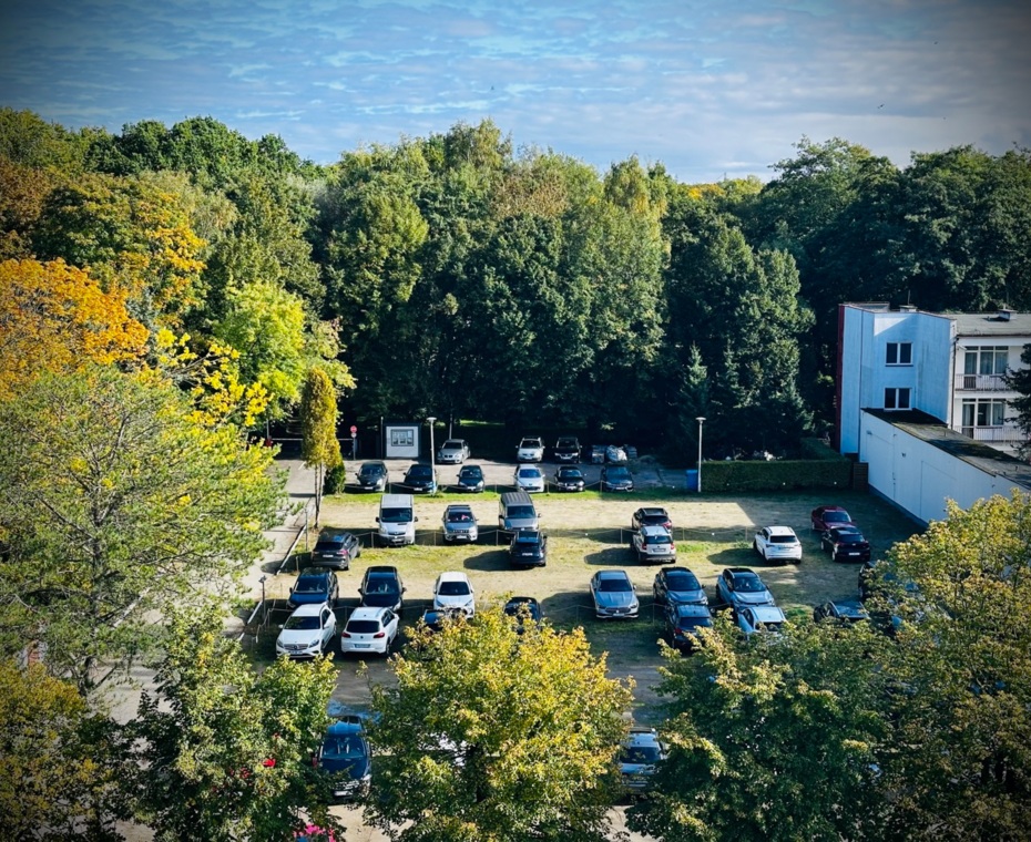 Dojazd do parkingu automatycznego od ulicy Kołłątaja.